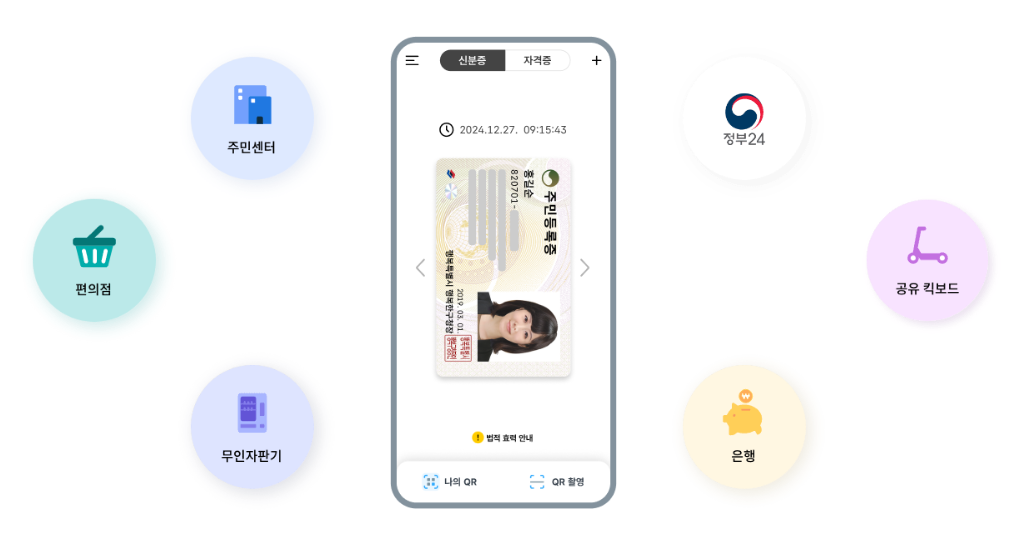 일상에서 신분증이 필요한 경우가 정말 많죠? 이제 실물카드를 챙기는 번거로움 없이 휴대폰만 있으면 됩니다.