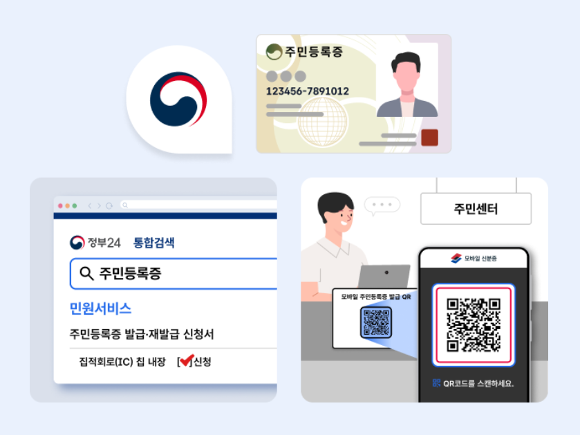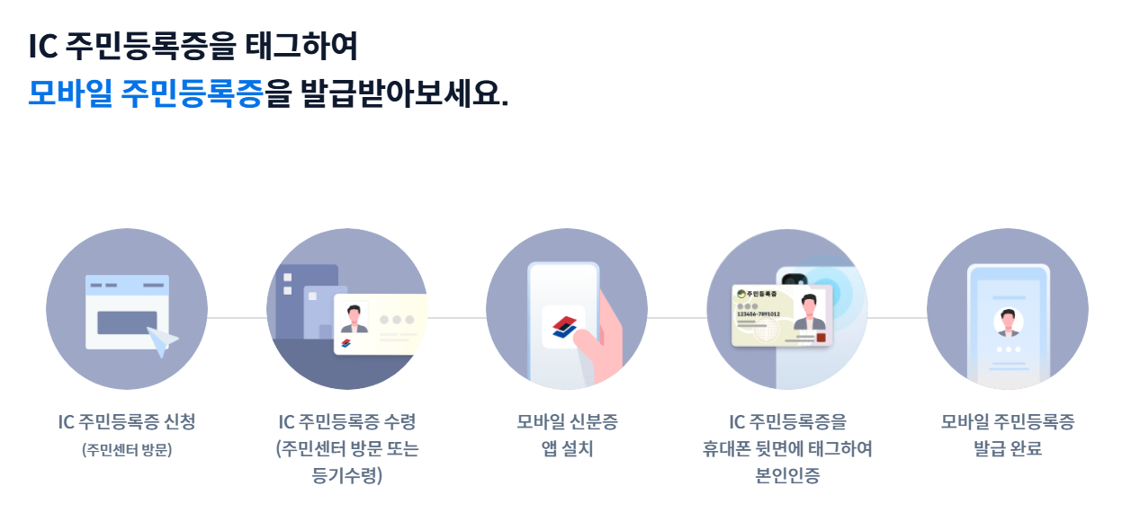 IC 주민등록증을 따로 만들지 않아도 가까운 읍·면·동 주민센터에 방문해서 신청서 작성 후 모바일 주민등록증을 발급받을 수 있어요.