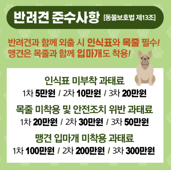 반려견 규정과 과태료 자세히 알아보세요!