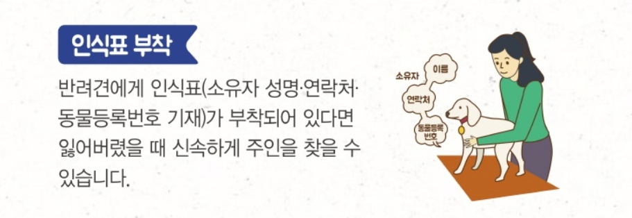 반려견이 외출 시 인식표를 반드시 착용해야 합니다. 인식표에는 반려견의 이름, 보호자의 연락처 정보, 그리고 주소가 기재되어야 하며, 이는 반려견이 길을 잃거나 사고를 당했을 때 신속하게 주인을 찾을 수 있도록 돕습니다.