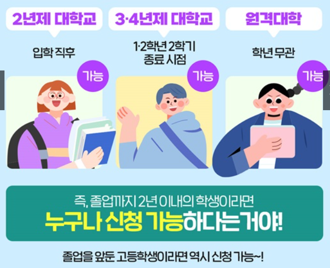즉, 졸업까지 2년이내의 학생이라면 누구나 신청 가능합니다. 졸업을 앞둔 고등학생도 신청 가능합니다.