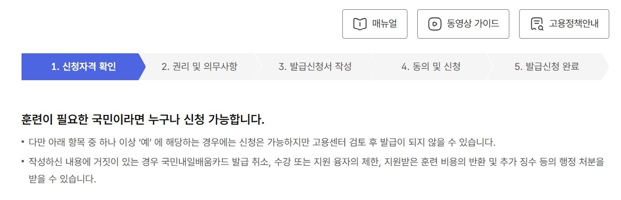 구직 신청이 완료되면, 온라인(고용24)에서 국민내일배움카드를 신청할 수 있습니다.