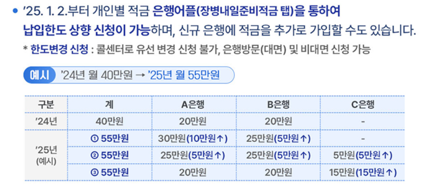 2024년 12월 31일 이전 가입자는 개별적으로 기존 가입 은행에 적금 납인한도 상향을 신청해야 합니다.