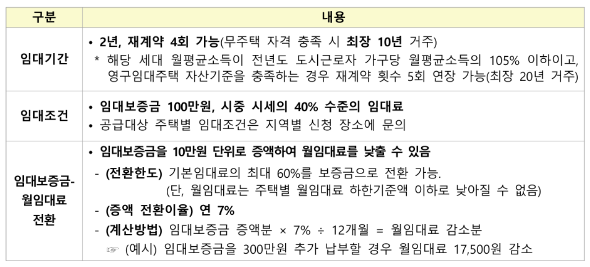 ✔️ 임대 기간 : 입주자는 최장 10년까지 거주할 수 있으며, 이 기간 동안 안정적으로 거주할 수 있습니다.