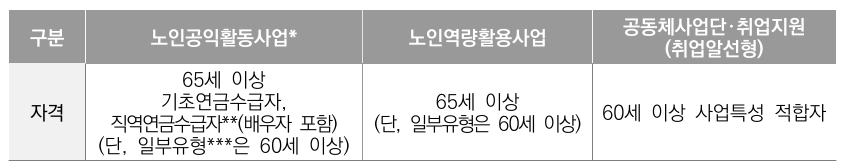 사업 유형별 노인일자리 신청자격