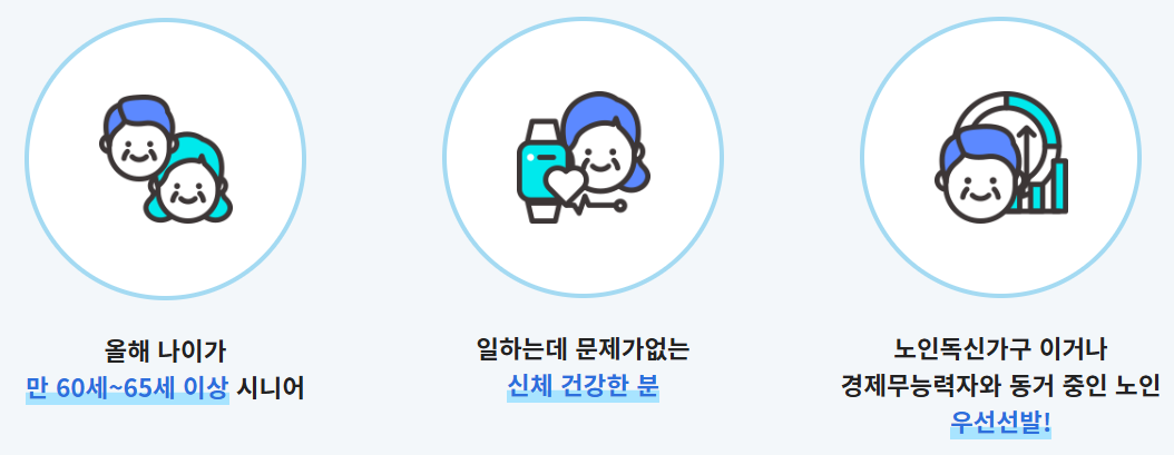 노인일자리 신청자격의 기본 조건