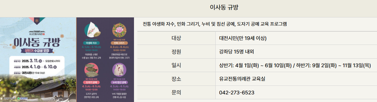 대전별서는 앞으로도 유교문화와 전통문화를 테마로 한 새로운 프로그램 개발과 차별화된 서비스를 제공하여, 대전이 품은 전통문화의 가치를 널리 알리고자 합니다.