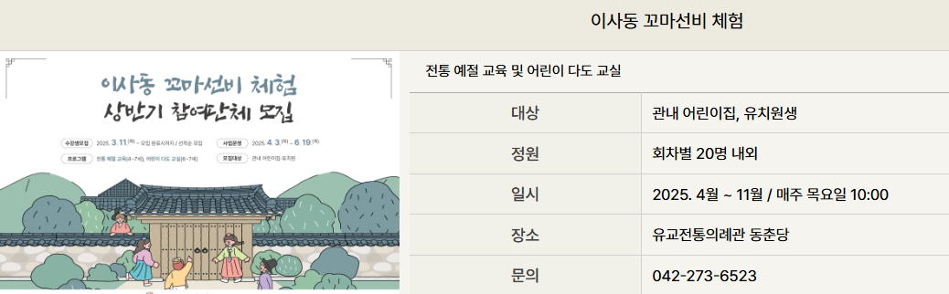 - 꼬마 선비 체험: 어린이들을 위한 유교 문화 교육