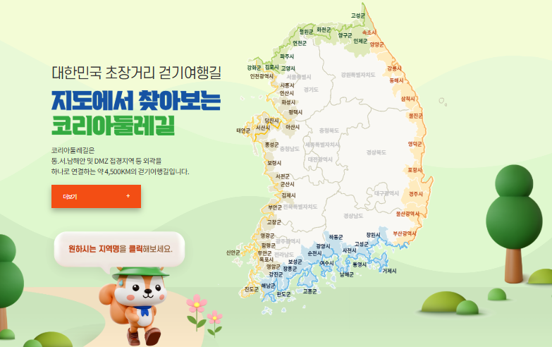 버튼을 누르면 코리아둘레길 공식 홈페이지로 연결됩니다!