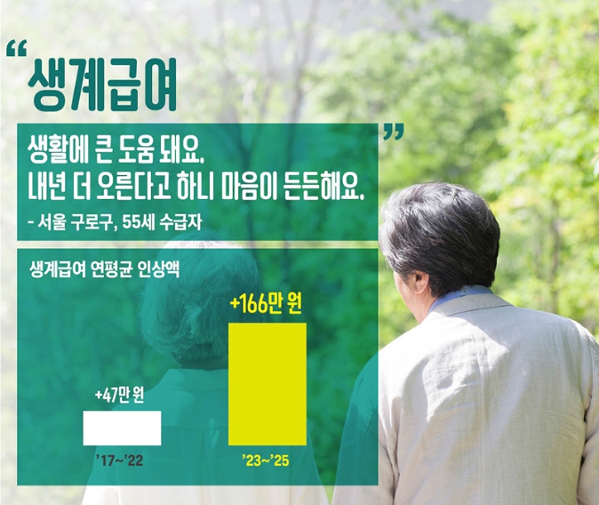 정부는 2023년부터 2025년까지 3년 연속으로 기준 중위소득을 대폭 인상하였고, 이는 물가 상승과 생활비 부담이 커진 상황에서 수급자들이 생활 안정을 취할 수 있도록 돕기 위한 조치입니다.