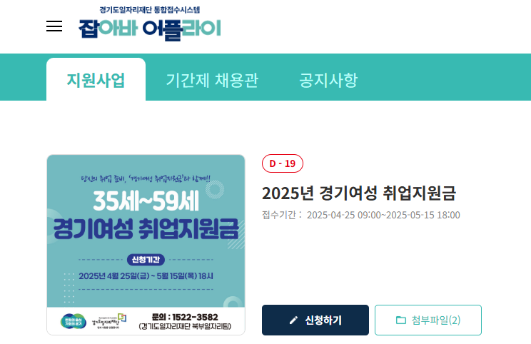 ✓ 신청 대상: 경기도 거주 35~59세 미취업 여성